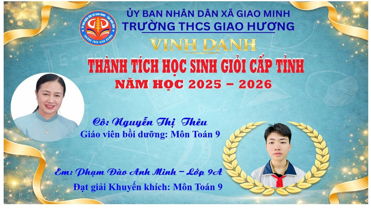 TRƯỜNG THCS GIAO HƯƠNG: NHỮNG KẾT QUẢ ĐÁNG GHI NHẬN TẠI KỲ THI HỌC SINH GIỎI CẤP TỈNH NĂM HỌC 2025–2026