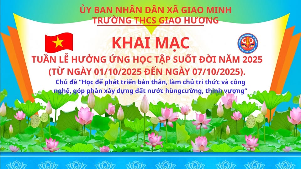 Hưởng ứng phong trào “Tuần lễ học tập suốt đời” do Bộ GD&ĐT, Sở GD&ĐT và UBND xã Giao Minh phát động, trường THCS Giao Hương đã tổ chức nhiều hoạt động ý nghĩa, thiết thực và giàu cảm hứng, lan tỏa thông điệp “Học để vươn xa – Cùng tri thức tỏa sáng!” đến toàn thể cán bộ, giáo viên, phụ huynh và học sinh.
