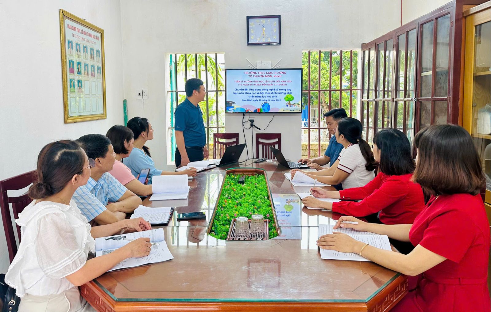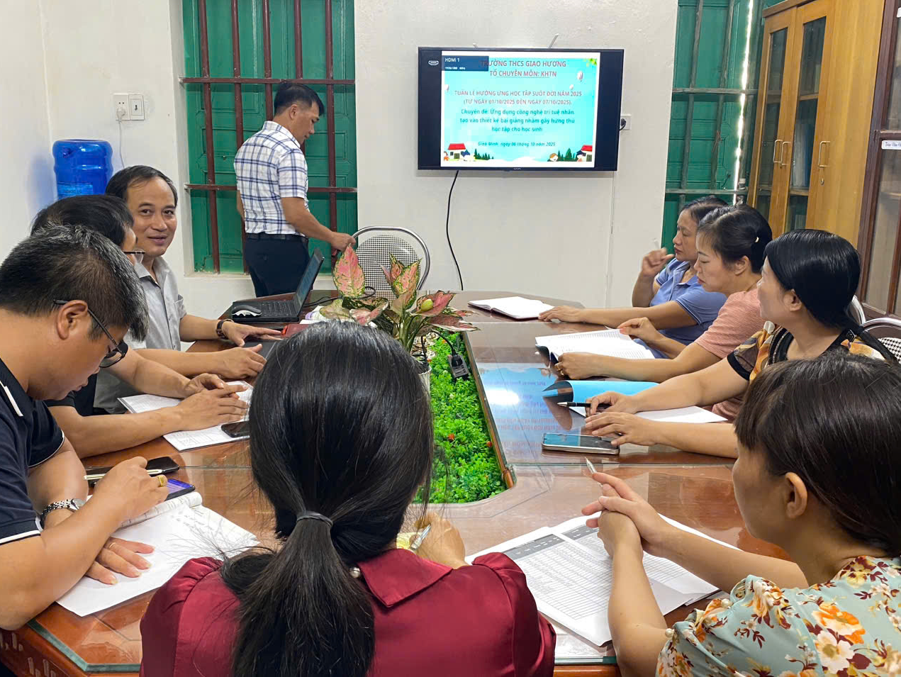 Với định hướng đổi mới, trường THCS Giao Hương đã tổ chức các hoạt động ứng dụng công nghệ thông tin và chuyển đổi số trong dạy học: thao giảng, học nhóm trực tuyến, trải nghiệm công nghệ mới… Học sinh được hướng dẫn cách khai thác tri thức số, rèn kỹ năng học tập thông minh, hình thành tư duy sáng tạo và tự chủ – những hành trang cần thiết trong kỷ nguyên 4.0.
